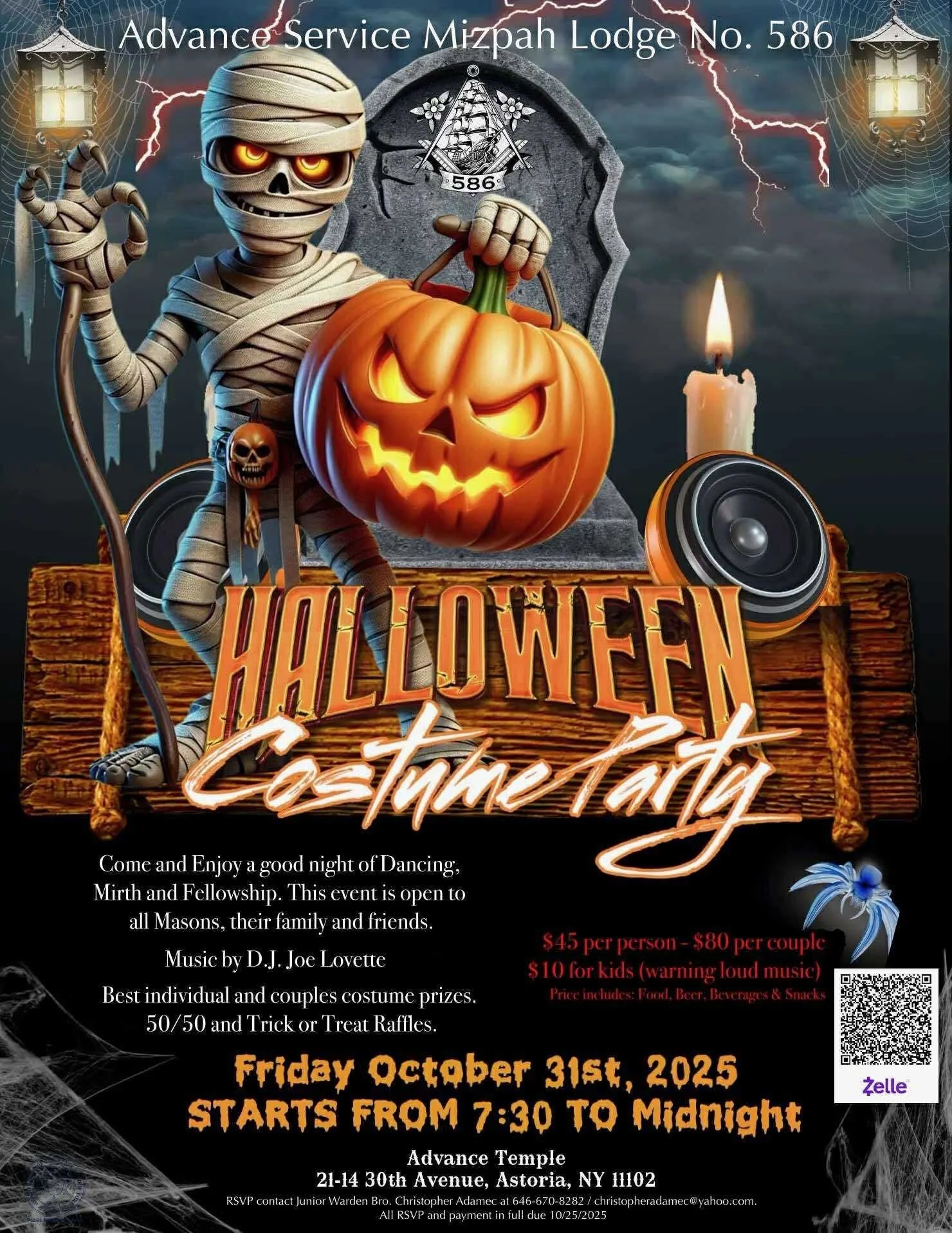Get ready for a night of music, laughter, and fellowship at Advance Service Mizpah Lodge No. 586’s annual Halloween celebration!