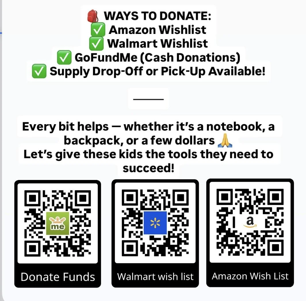 Your support helps ensure that no child starts the school year without the basic supplies they need to succeed — from notebooks and pencils to backpacks and more. I gratefully accept both physical donations of supplies and monetary contributions. Every dollar donated is stretched to its fullest — I personally take on the task of shopping smart, hunting the best deals, and maximizing the impact of every contribution.